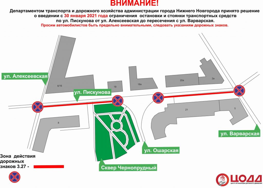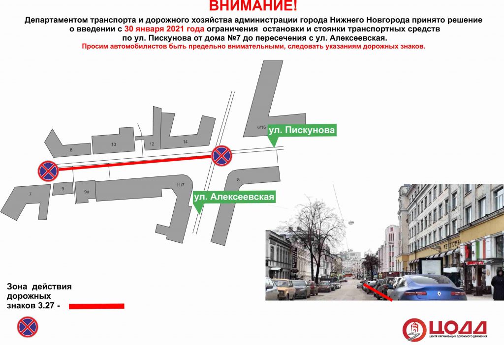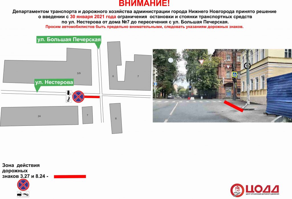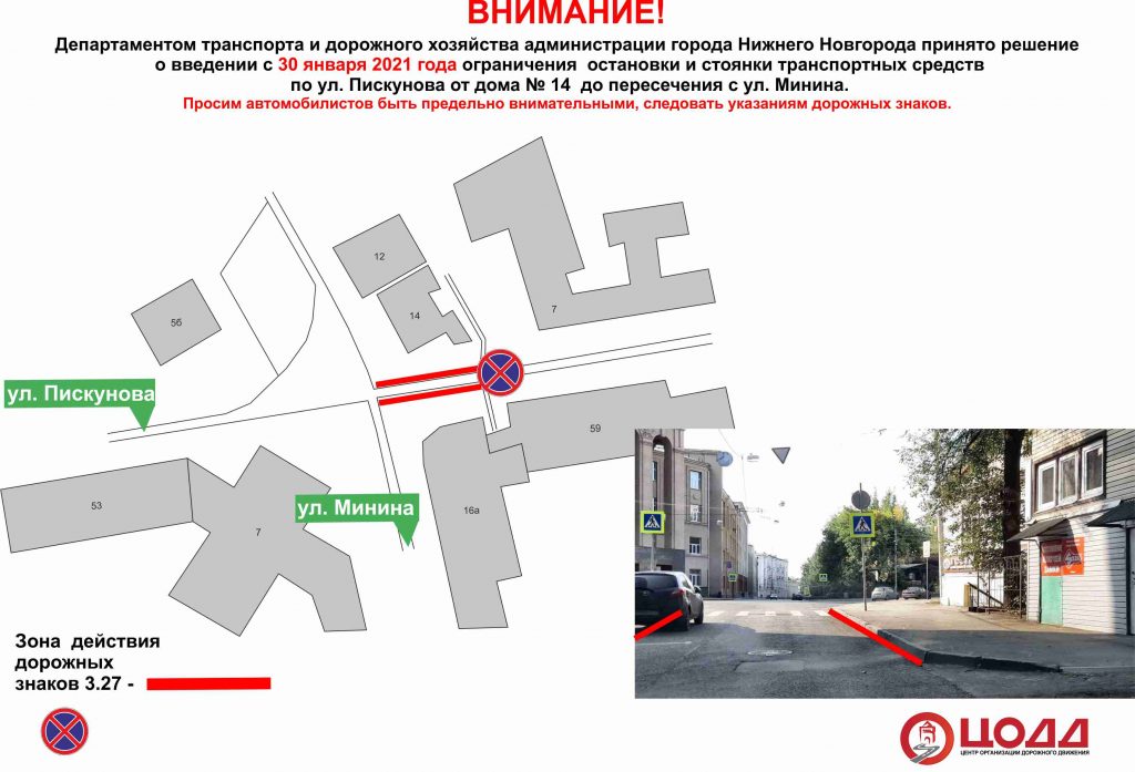 Парковку и остановку автомобилей запретят на участках еще 5 улиц Нижнего Новгорода с 30 января, сообщает городской центр организации дорожного движения.