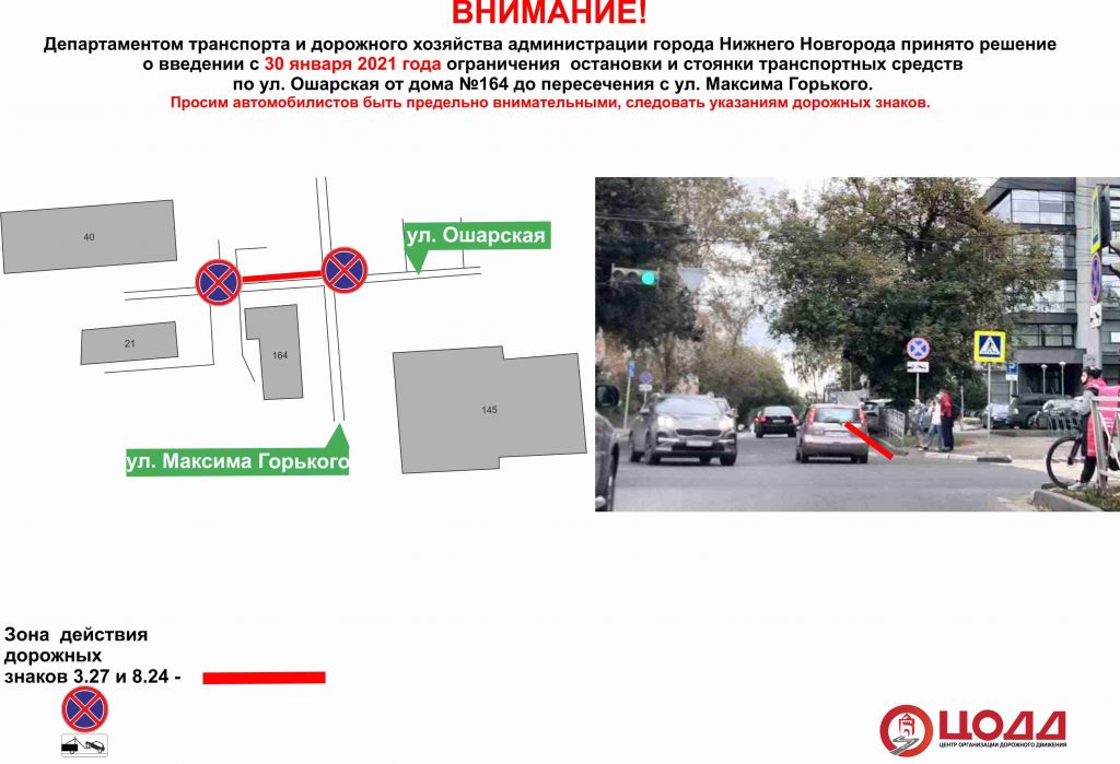 Запрет на остановку и парковку коснется и двух небольших участков проезжей части на ул. Ошарской:
