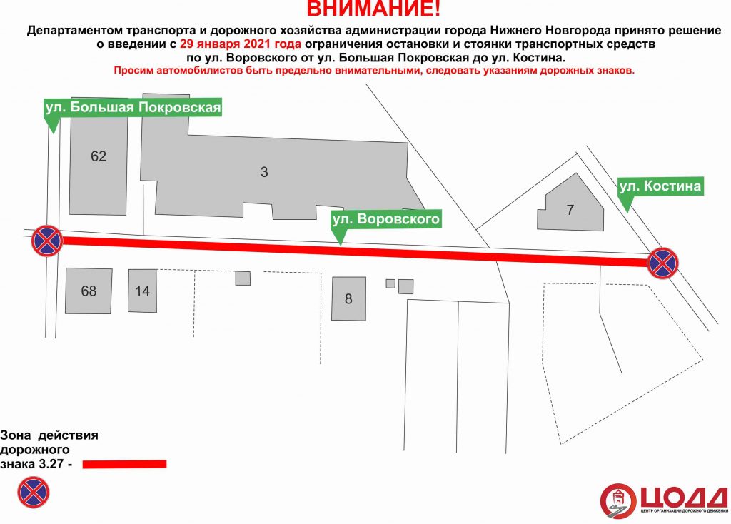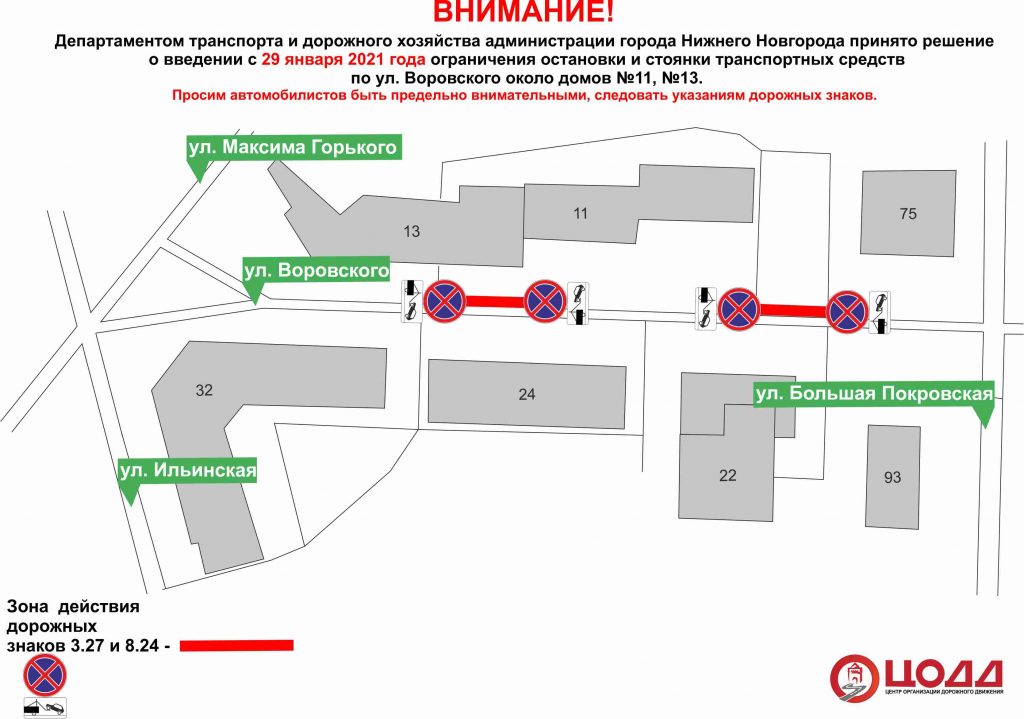 Кроме того, с 29 января будет ограничена остановка и парковка на двух участках ул. Воровского:
