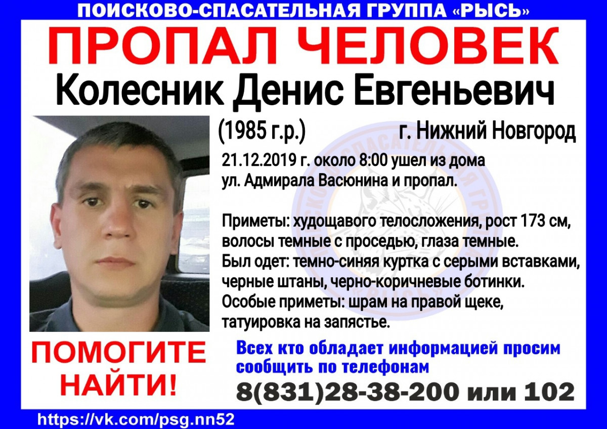 34-летний Денис Колесник пропал в Нижнем Новгороде