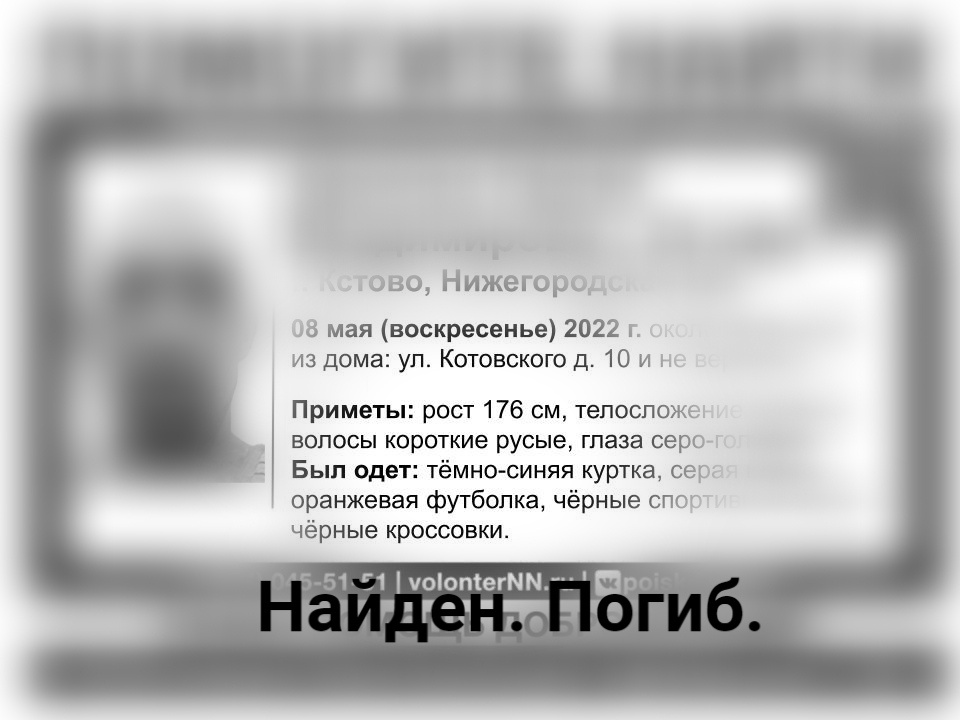 Пропавший в Кстове Сергей Архипов найден погибшим. Об этом информирует поисково-спасательный отряд «Волонтер».