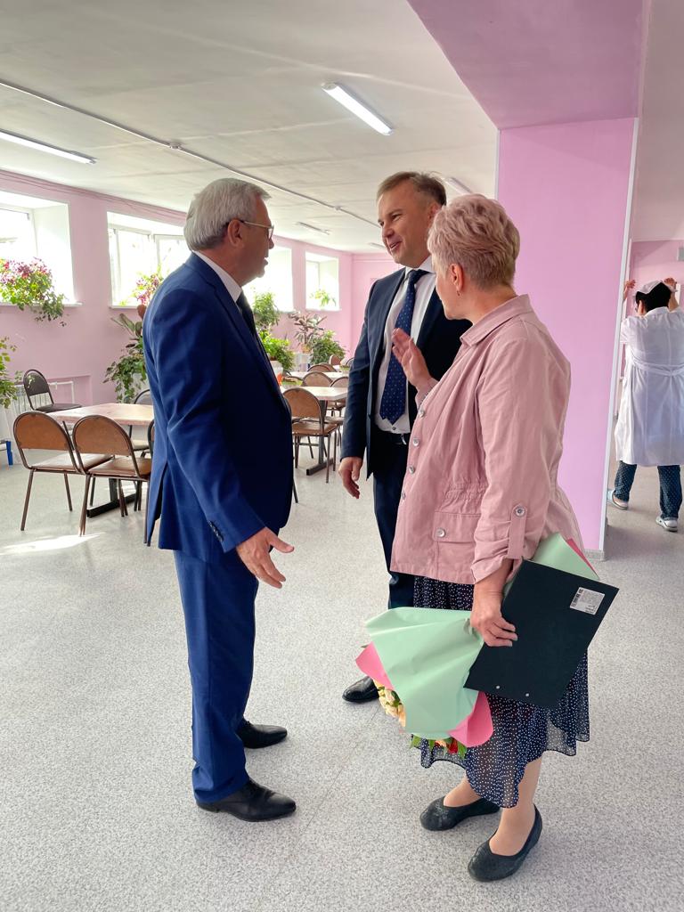 В школе № 9 города Дзержинска Евгений Люлин оценил реконструкцию пищеблока. Там был проведен капитальный ремонт, заменена электрика, установлено новое холодильное оборудование, закуплены посудомоечные машины и новая посуда.