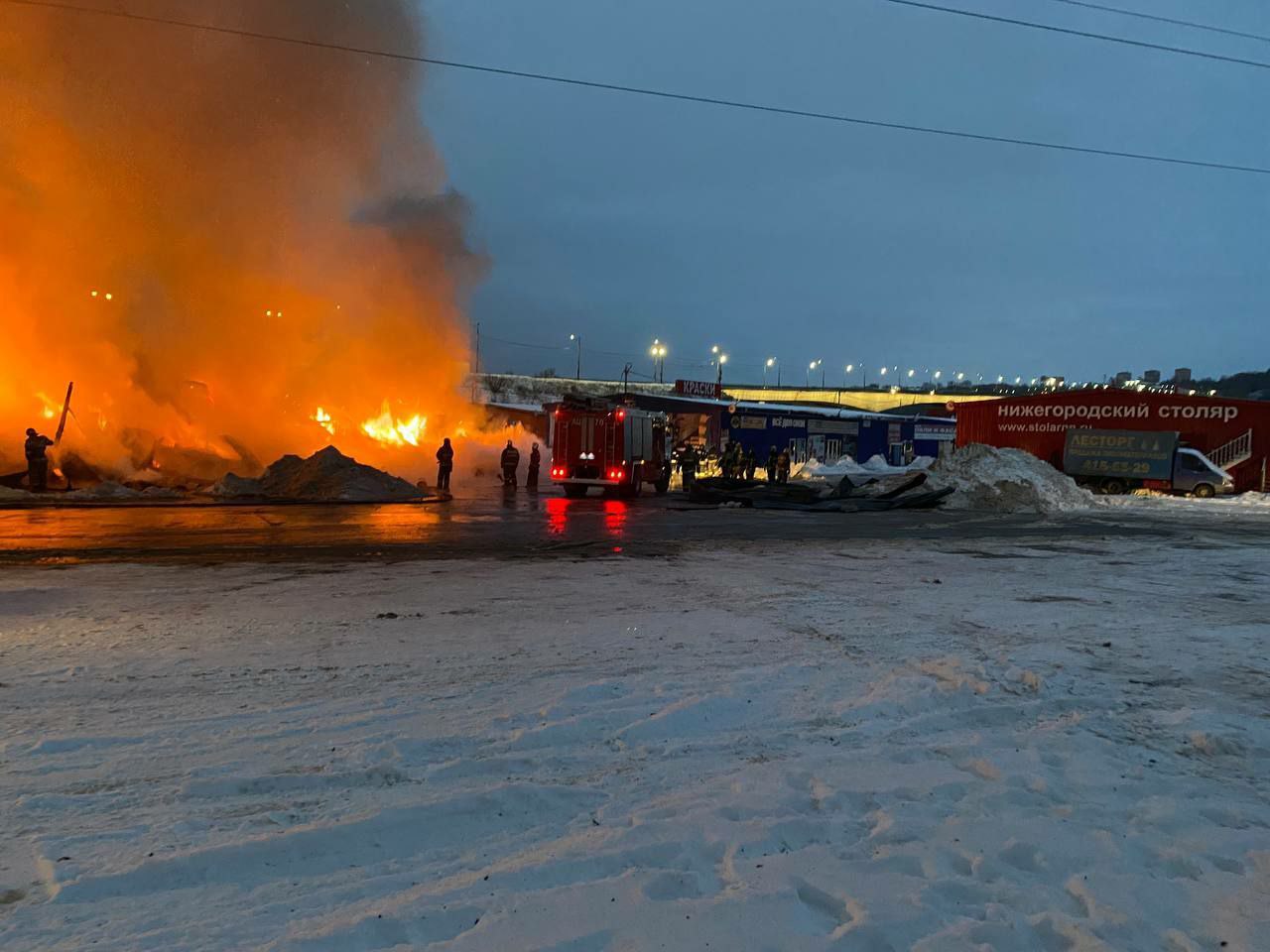 Пожар на рынке стройматериалов на улице Суздальской (микрорайон Карповский) в Ленинском районе Нижнего Новгорода начался рано утром 20 ноября. Об этом сообщает пресс-служба ГУ МЧС РФ по Нижегородской области.