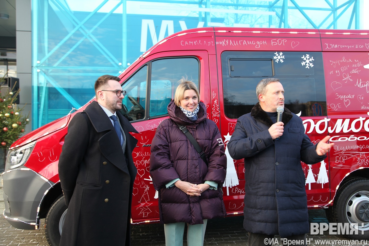 Запуск «Добромобиля» по маршруту состоялся в Нижнем Новгороде 21 декабря, он отправился в путь от музея ГАЗа (пр. Ленина, 95), сообщает корреспондент ИА «Время Н», присутствующий на торжественном мероприятии.