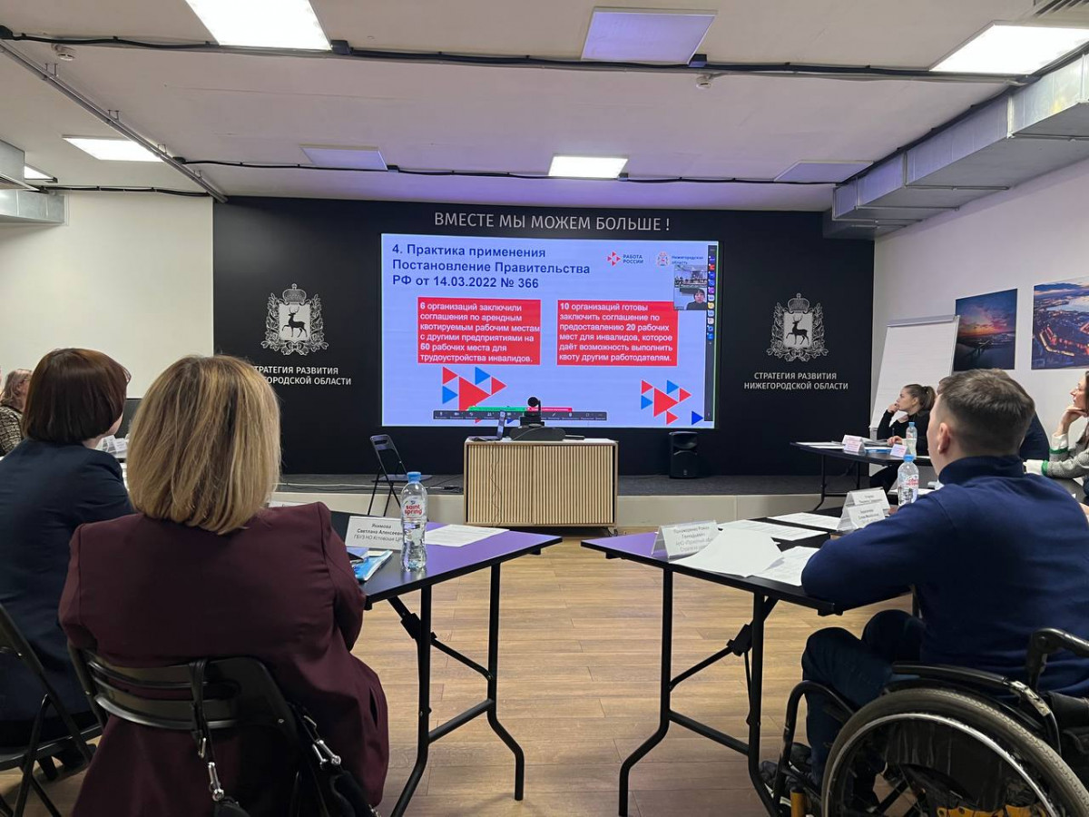 В АНО «Проектный офис Стратегии развития Нижегородской области» прошел круглый стол, участники которого обсудили эффективные и взаимовыгодные механизмы реализации новых условий выполнения квоты по трудоустройству граждан с инвалидностью.