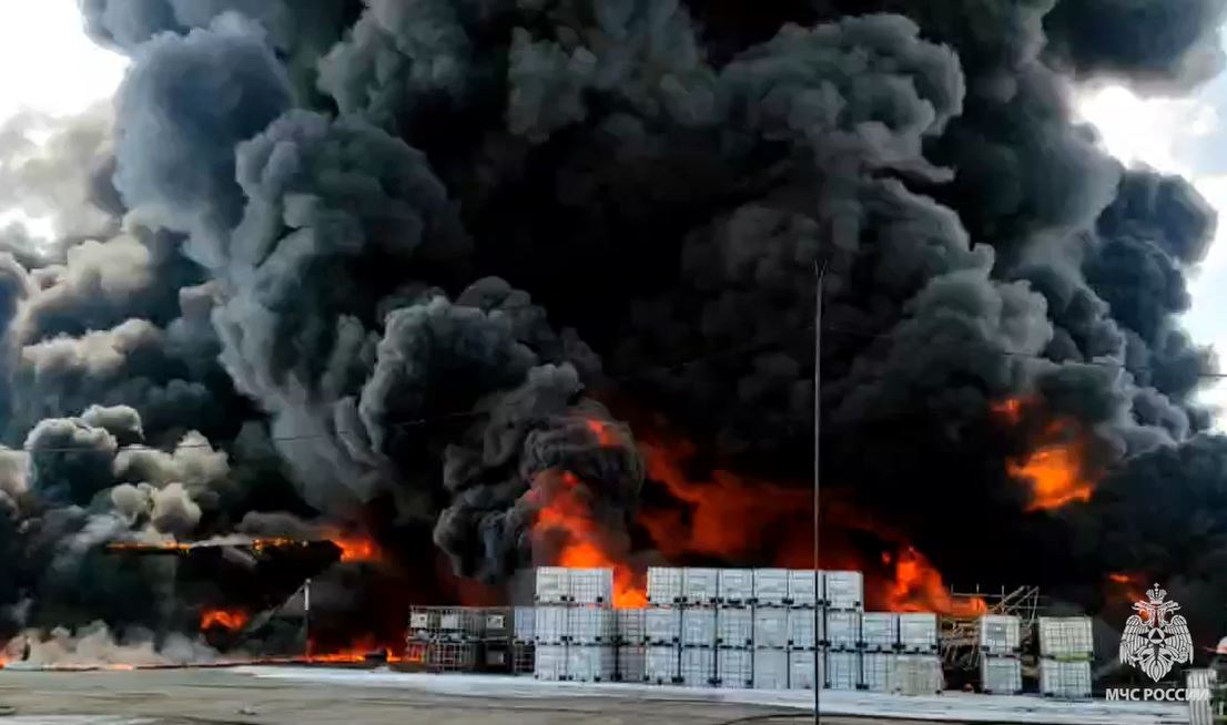 По предварительным данным, одно из предприятий полностью уничтожено огнём, а на другом сгорел склад готовой продукции.