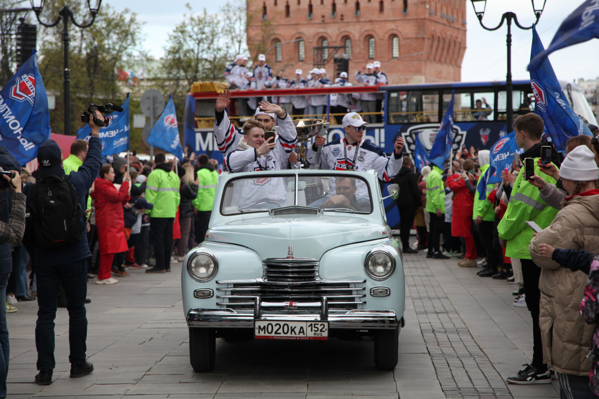 Автобус с игроками и тренерским штабом стартовал от Дворца спорта им. Коноваленко и проследовал до площади Минина и Пожарского. Специальная сцена с активностями для болельщиков работала на Театральной площади, до которой и дошли спортсмены и музыканты Нижегородского губернского оркестра.