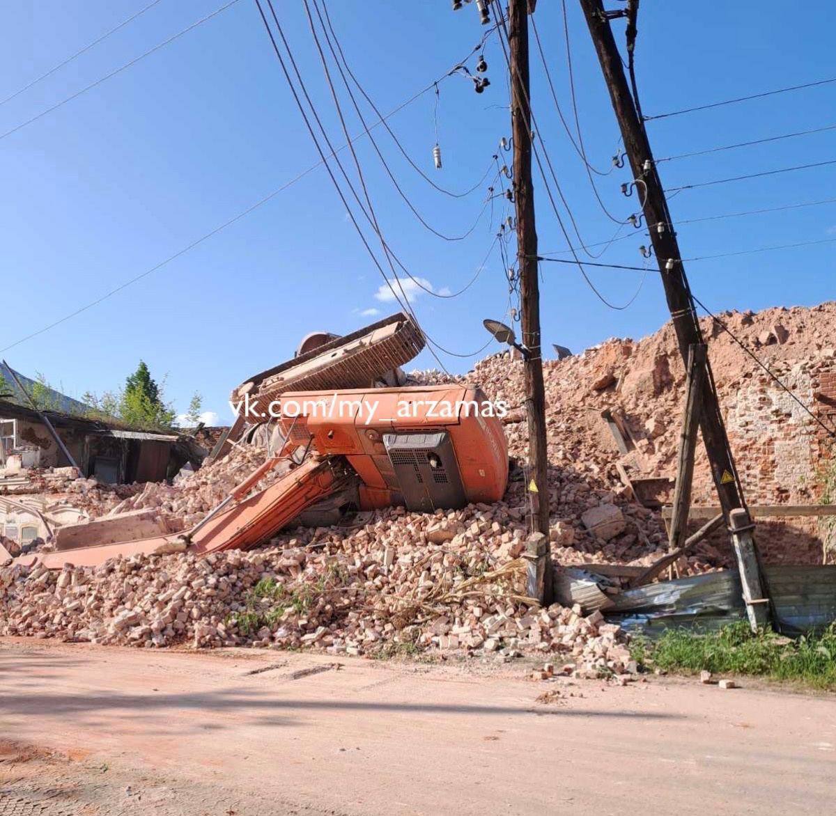 Экскаватор опрокинулся в Арзамасе во время демонтажных работ