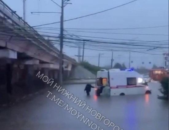 Машина скорой помощи застряла в огромной луже в центре Сормова, сообщают очевидцы в соцсетях.