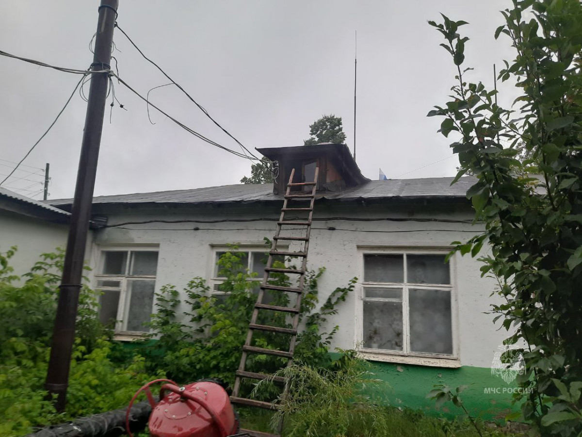 В 05:48 возгорание локализовали. В 06:25 его полностью ликвидировали. В результате обгорел тамбур, электрощит и чердак на площади 50 кв. м. Жертв и пострадавших нет.