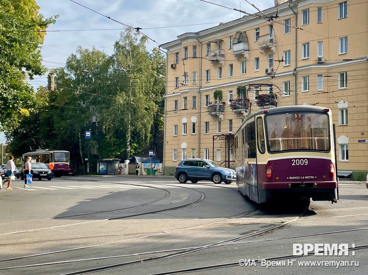 Транспорт остановился на пересечении улицы Красносельской и Ильинской. За ним встали несколько других вагонов.