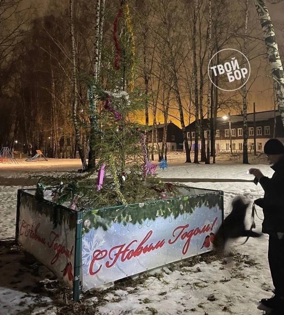 На Бору установили необычную новогоднюю ель, фотографией в соцсетях поделились жители города.