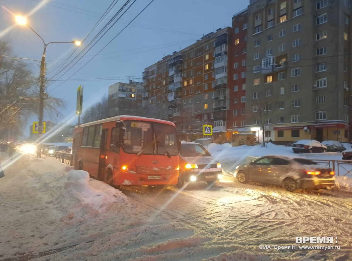 Маршрутка № 40 и легковой автомобиль столкнулись на улице Янки Купалы в Нижнем Новгороде утром 17 января, об этом ИА «Время Н» сообщил корреспондент ИА «Время Н» с места событий.