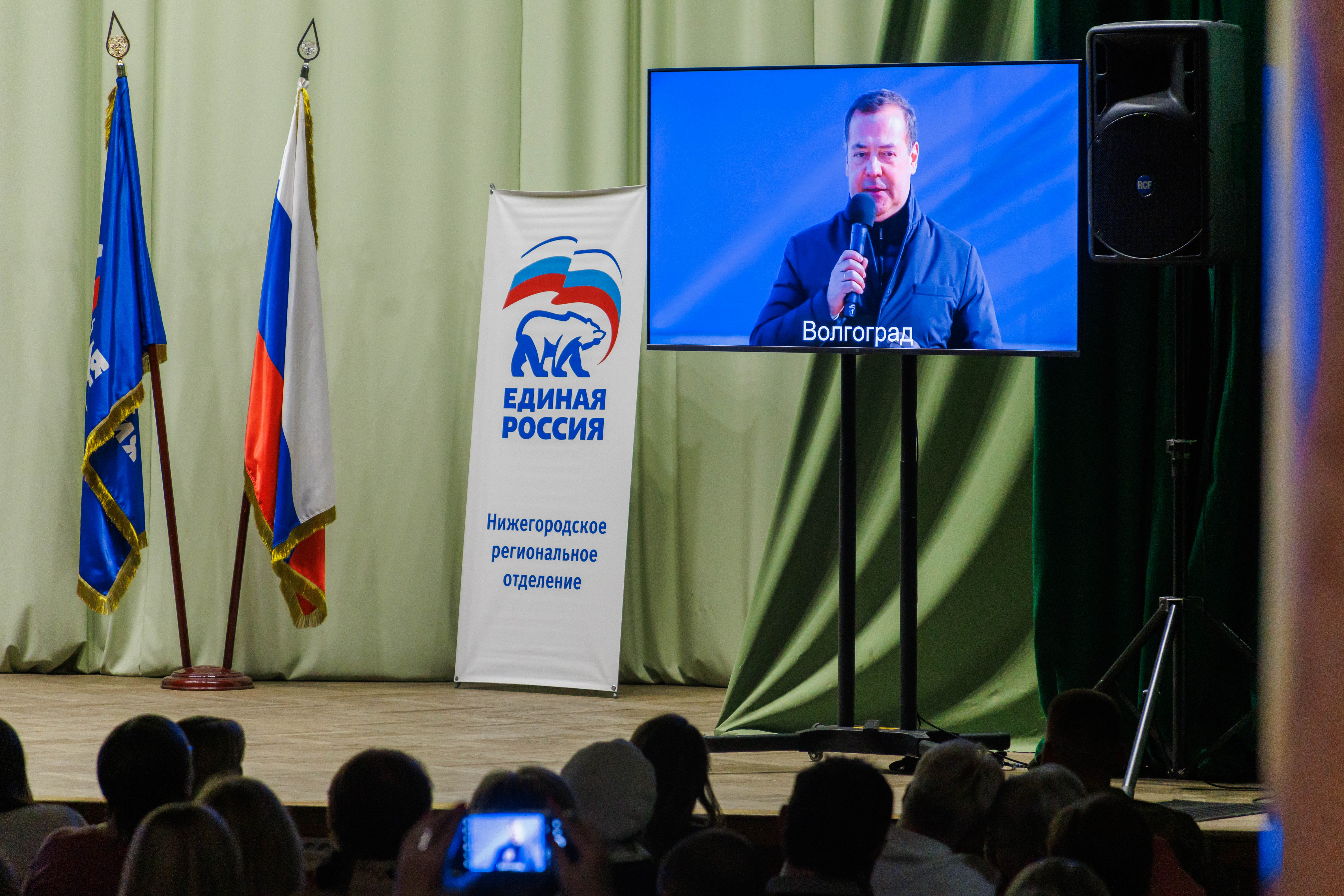 «Именно отсюда наша Красная Армия начала гнать фашистских захватчиков. И то, что было сделано в Сталинграде, изменило ход Второй Мировой войны, Великой Отечественной войны. Сейчас мы тоже должны изменить ход нашей жизни. Именно поэтому нам нужна консолидация. Консолидация вокруг лидера, консолидация внутри нашей с вами партии, „Единой России“. Только в этом случае мы победим. А мы победим, сомнений нет. За Победу, за Россию!» — сказал Дмитрий Медведев.