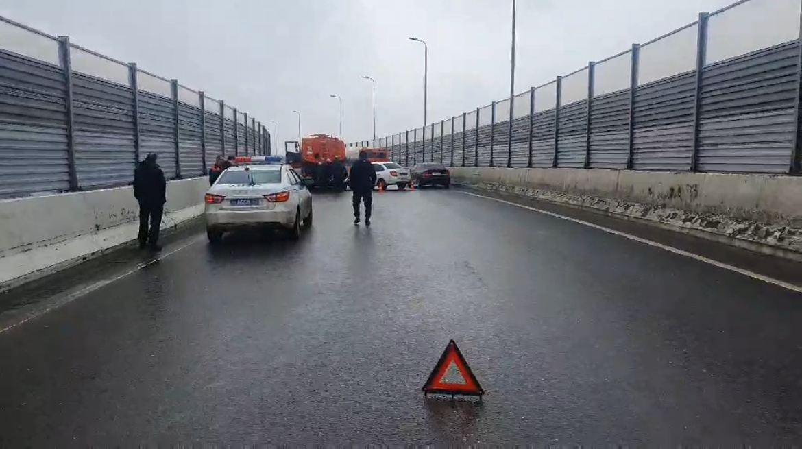 Авария случилась на объездной дороге в аэропорт. Мужчина, за рулем отечественного автомобиля, при перестроении не уступил дорогу автобусу и совершил с ним столкновение. Отскочив от автобуса, он врезался в стоящий КАМАЗ.