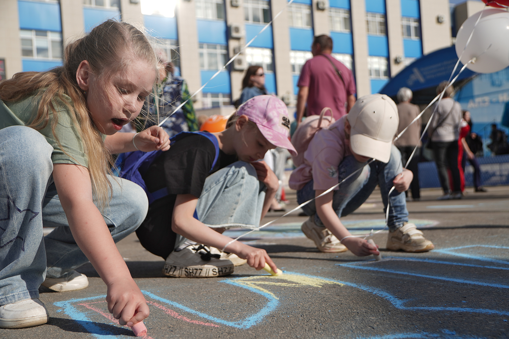Двухчасовая праздничная программа у проходной завода началась с гимна АПЗ. Далее по традиции первое слово — детям заводчан.