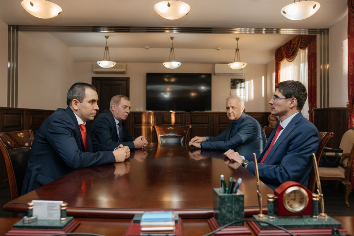 Заместитель губернатора Нижегородской области Андрей Саносян, специальный представитель Росстандарта в Приволжском федеральном округе Сергей Севницкий и руководитель Приволжско-Уральского межрегионального территориального управления Росстандарта Владимир Калентьев обсудили перспективы развития Государственного центра стандартизации, метрологии и испытаний в Нижегородской области («Нижегородский ЦСМ»).