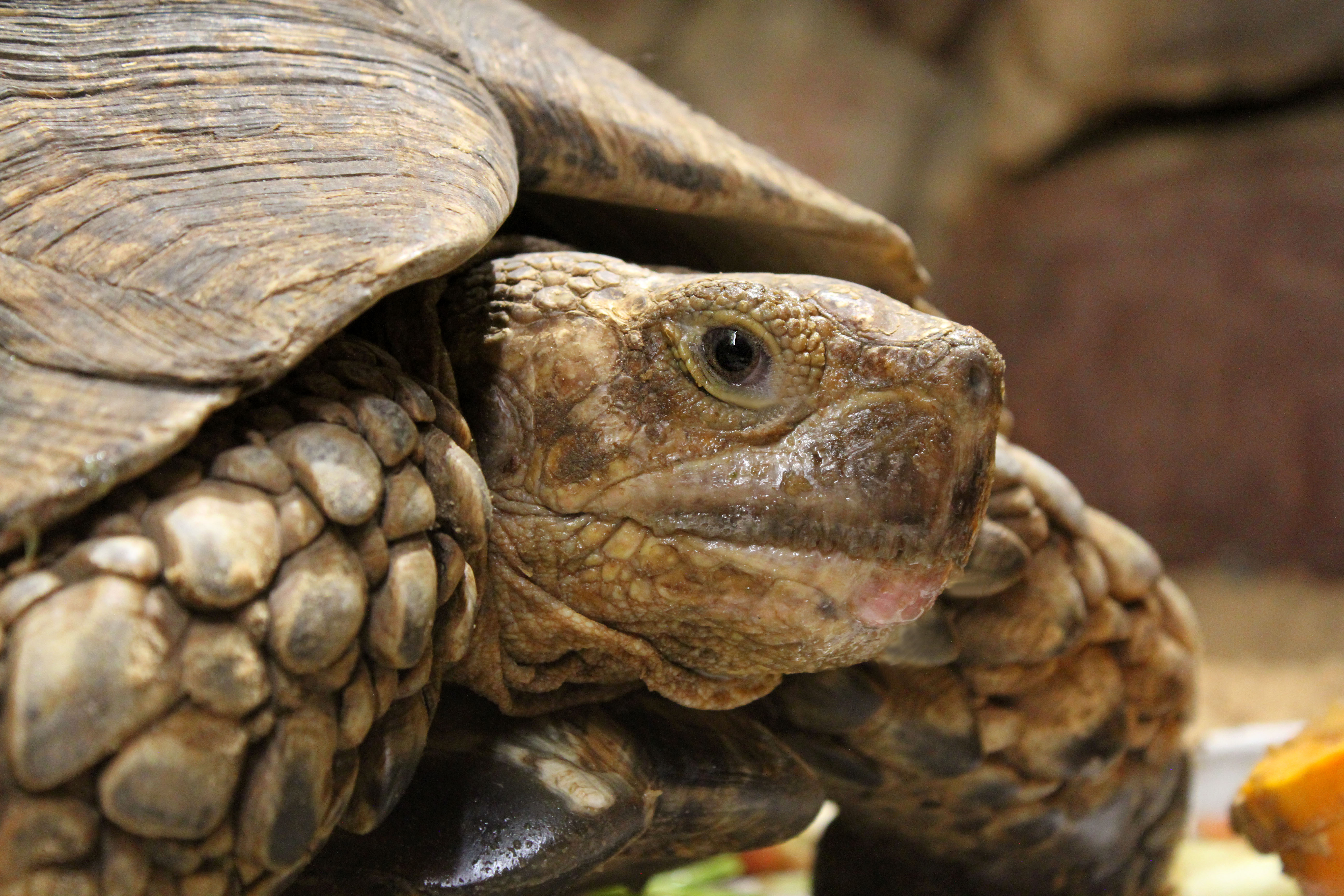 Черепахи (самец и самка) поселились в павильоне «Дом птиц и приматов» на второй территории зоопарка. Этих сухопутных рептилий отличают внушительные размеры: в длину их панцирь составляет 70 и более сантиметров, а вес взрослых особей может доходить до 50 кг. Свое название леопардовые черепахи получили из-за рисунка панциря, напоминающие пятна леопарда.
