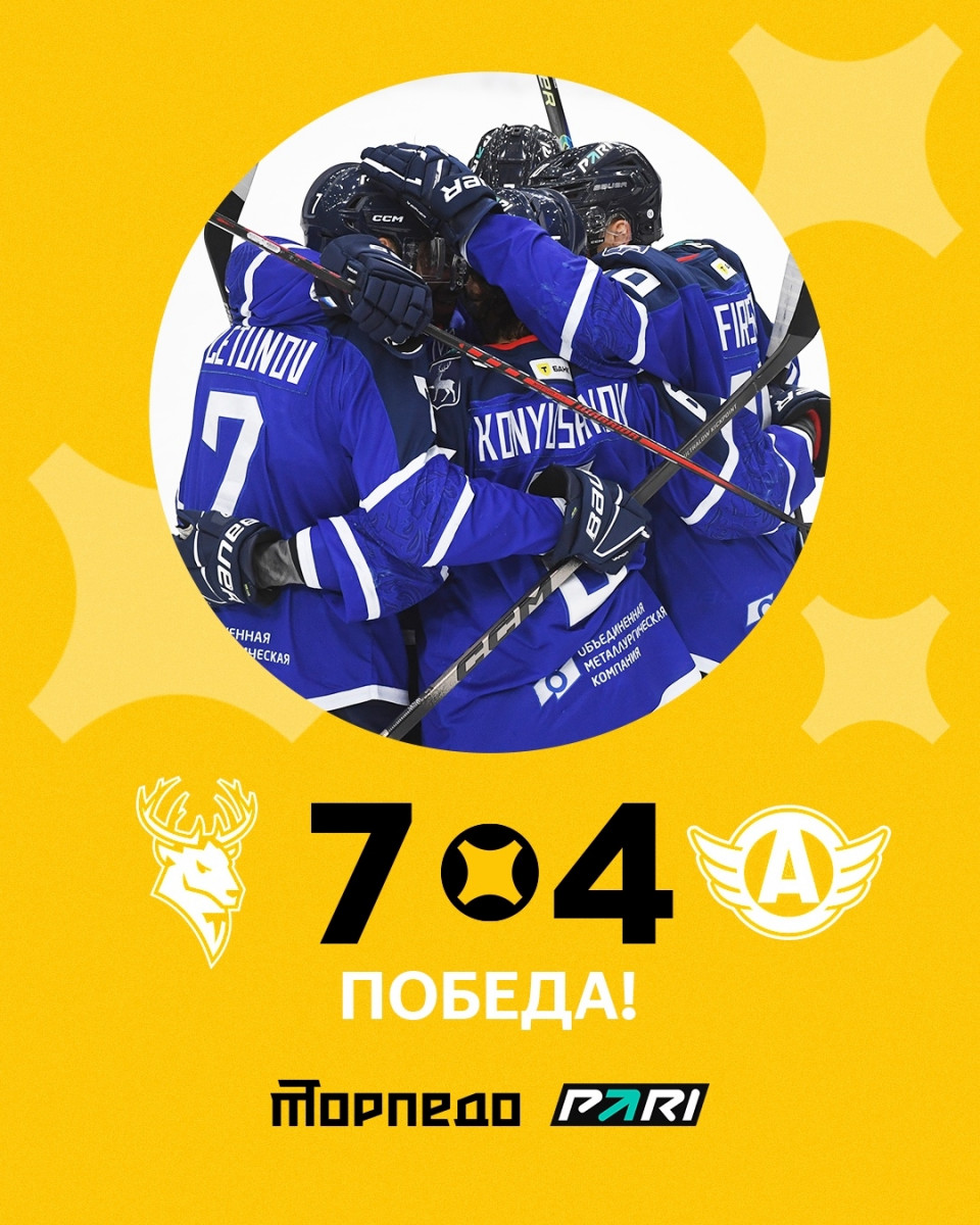 Итоговый счёт матча — 7:4 в пользу «Торпедо». Следующий матч (6+) с участием нижегородской команды пройдет 30 октября — «Торпедо» на домашнем льду сразится с тольяттинской «Ладой».