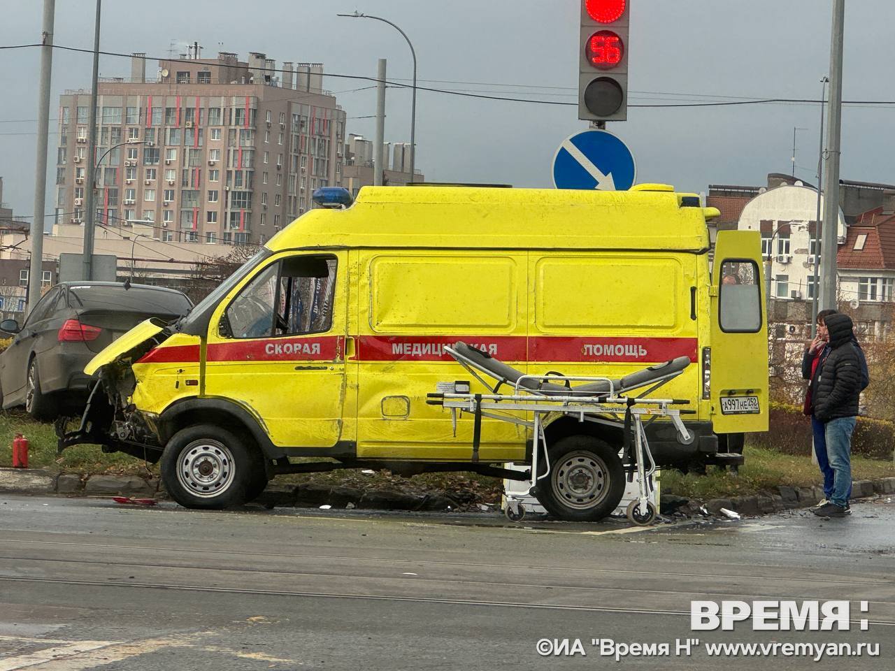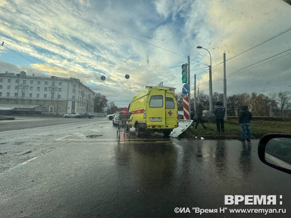 Машина скорой помощи и легковой автомобиль столкнулись на площади Лядова в Нижнем Новгороде днём 26 октября, сообщает корреспондент ИА «Время Н» с места событий.