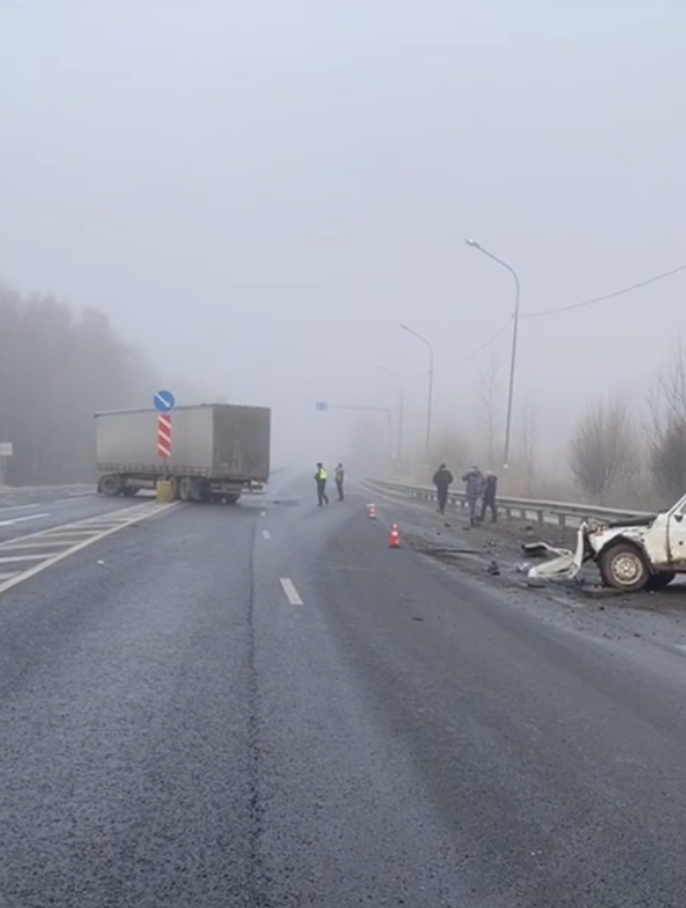 Грузовик и легковушка столкнулись на трассе М-7 в Лысковском округе