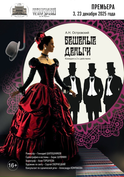 Премьера по одной из самых популярных комедий А.Н. Островского «Бешеные деньги» (16+) состоится в Нижегородском государственном академическом театре драмы им. М. Горького 3 декабря, об этом сообщили в драмтеатре.