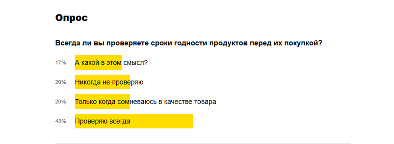 43% участников опроса, проведенного на сайте ИА «Время Н», всегда проверяют сроки годности продуктов перед их покупкой.