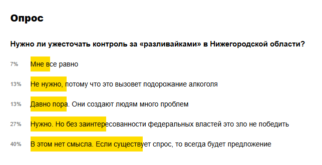 13% нижегородцев проголосовали на ответ «Давно пора, потому что „разливайки“ создают людям много проблем».