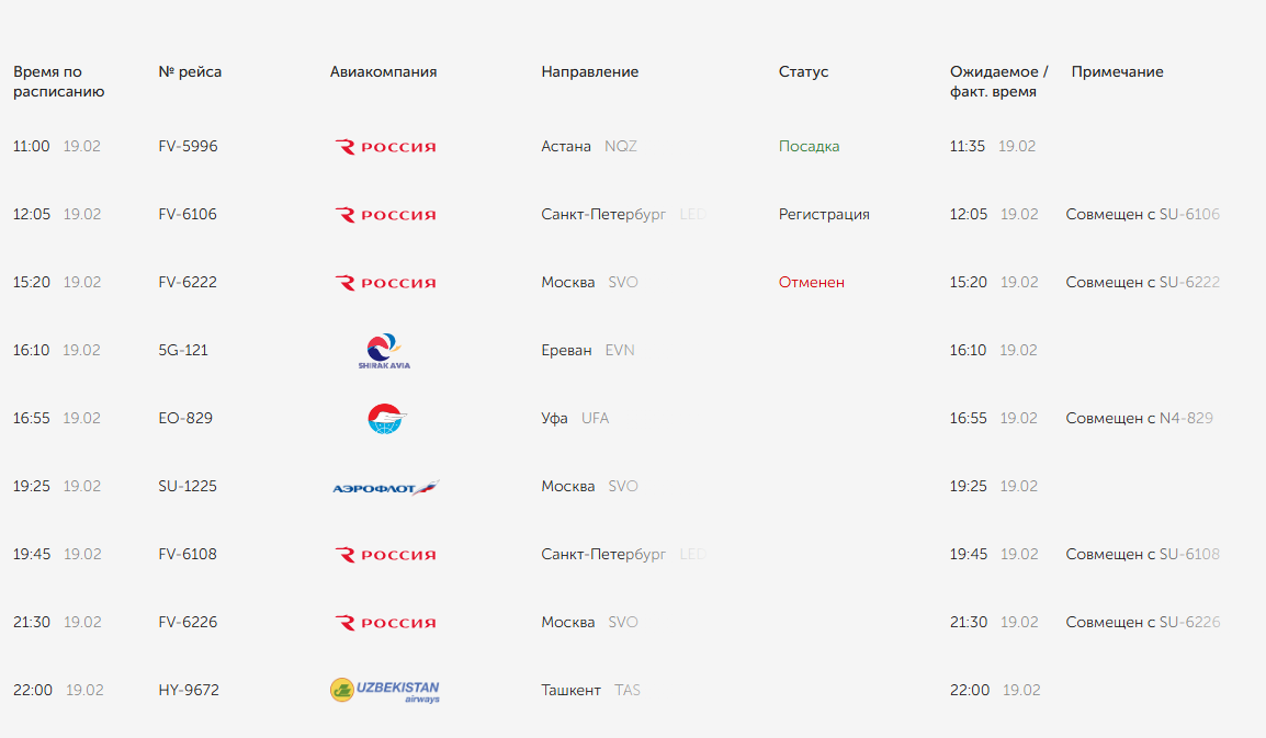 Информация представлена в онлайн-табло.