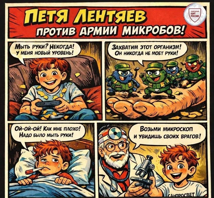 Образовательный проект в виде комиксов создан специалистами ведомства и направлен на информирование детей о здоровье. В первом выпуске ребята узнают о микробах и как от них защититься.