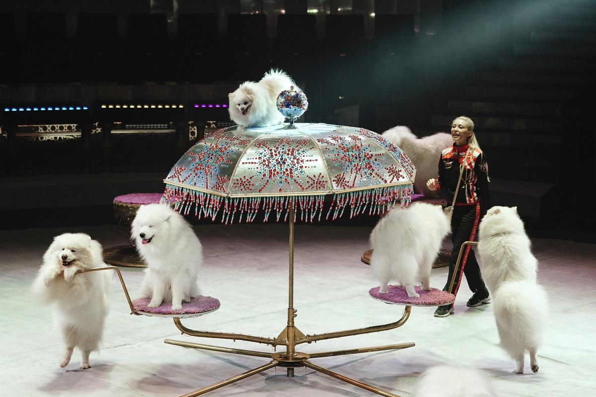 Гостям мероприятия был показан настоящий эксклюзив: ещё совсем юные, начинающие пушистые артисты номера «Дог-шоу» — самоеды Тони и Старк — впервые вышли в манеж перед зрителями под чутким руководством дрессировщицы Екатерины Запашной.