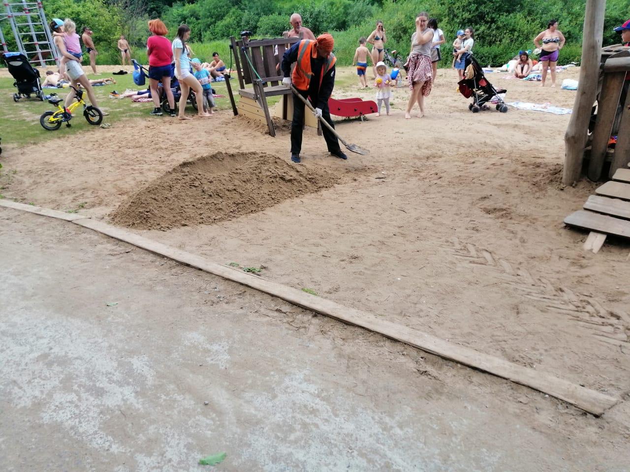 Спустя двое суток в рамках муниципального контракта по содержанию нижегородских пляжей на детские площадки рядом со вторым и третьем озерами хутора был завезен свежий песок.