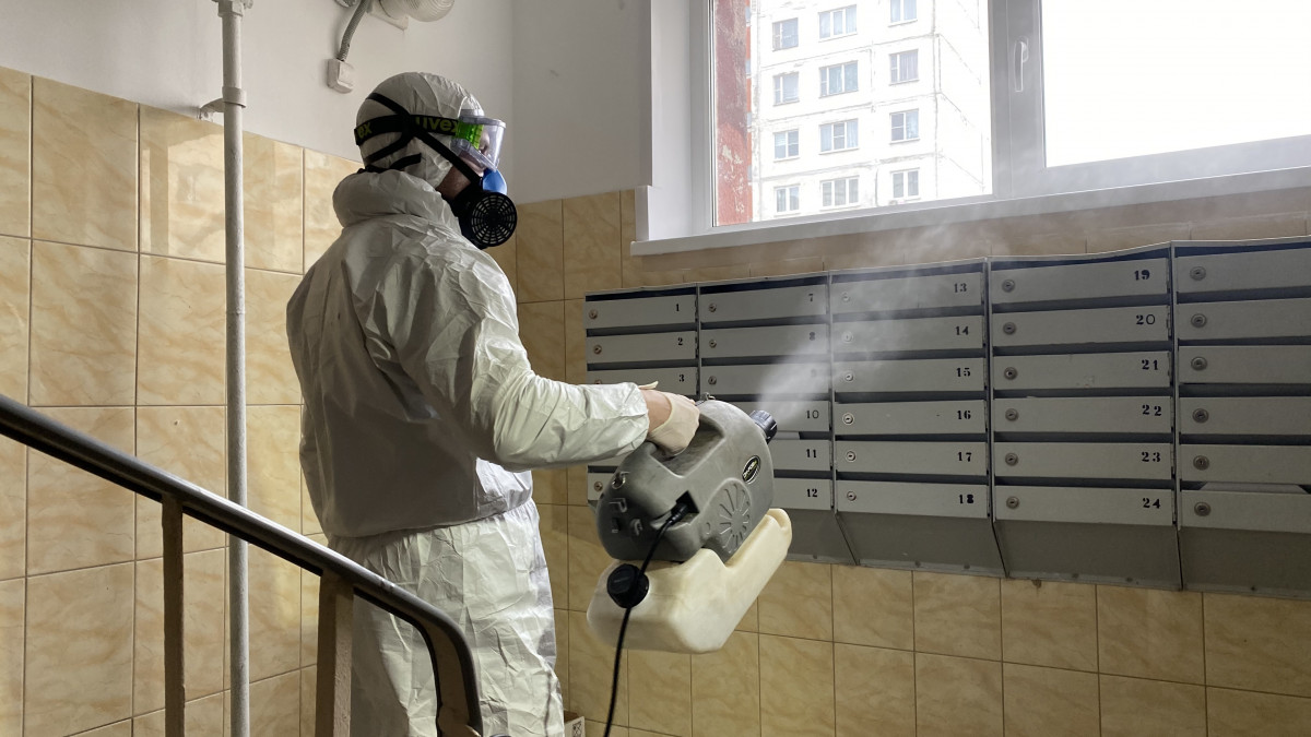 Согласно рекомендациям Федеральной службы по надзору в сфере защиты прав потребителей и благополучия человека, дезинфекцию необходимо проводить не реже двух раз в день. Обрабатываются панель домофона, дверные ручки, перила, кнопки лифта, выключатели, стены, полы и почтовые ящики.