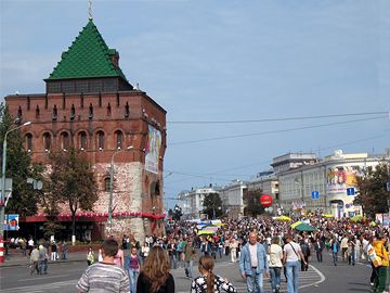 С 8:00 4 сентября до 6:00 8 сентября 2013 года и с 23:00 8 сентября до 8:00 часов 10 сентября 2013 года движение транспорта по площади Минина и Пожарского на участке от памятника В.П.Чкалову до улицы Минина будет организованно по суженной проезжей части дороги.