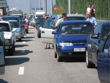 На трассе работают сотрудники ГИБДД, которые регулируют движение и оказывают помощь в выборе маршрута.
