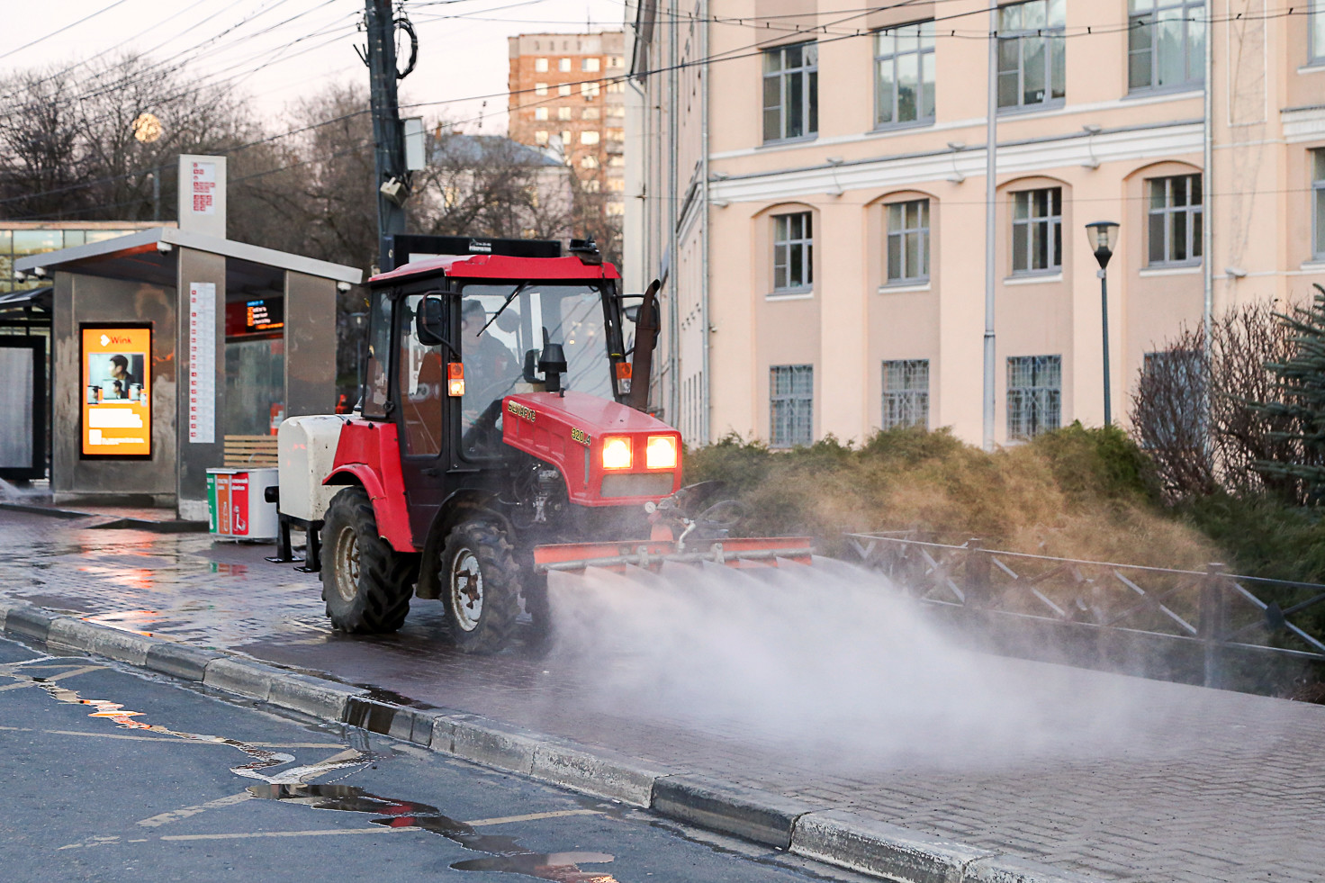 В Канавинском районе продезинфицировали 1,8 миллиона квадратных метров улично-дорожной сети. В Сормовском районе всю ночь работали 10 единиц техники.