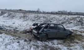 Авария произошла в субботу, 14 ноября около десяти часов утра. Вероятно, водитель не справился с управлением на скользкой дороге и машина улетела в кювет.