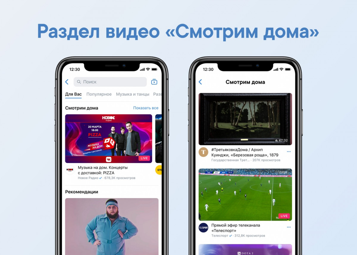 На видеовитрине «ВКонтакте» создан тематический раздел «Смотрим дома»: шоу, сериалы, трансляции офлайн-мероприятий.
