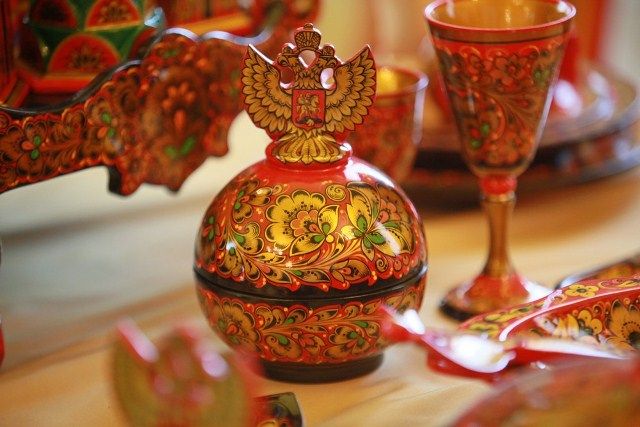 Городецкая роспись, хохлома, семеновская матрешка, жбанниковская игрушка, гжельский фарфор, жостовская роспись, павловопосадский платок, федоскинская шкатулка, богородская игрушка, вологодское кружево, дымковская игрушка, палехская миниатюра и каслинское литье хорошо известны как в России, так и за ее пределами.