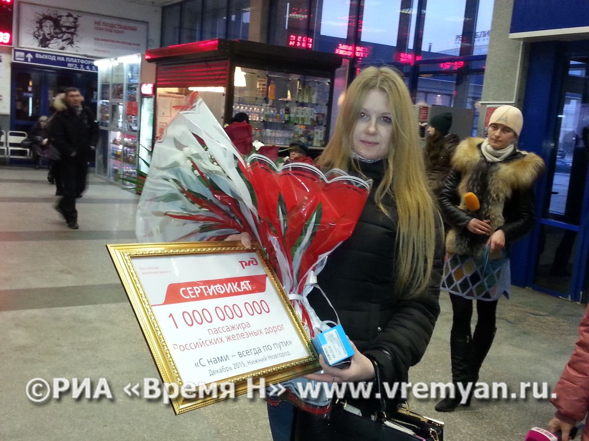 Чествование миллиардного пассажира РЖД состоялось на Московском вокзале Нижнего Новгорода во вторник, 22 декабря.