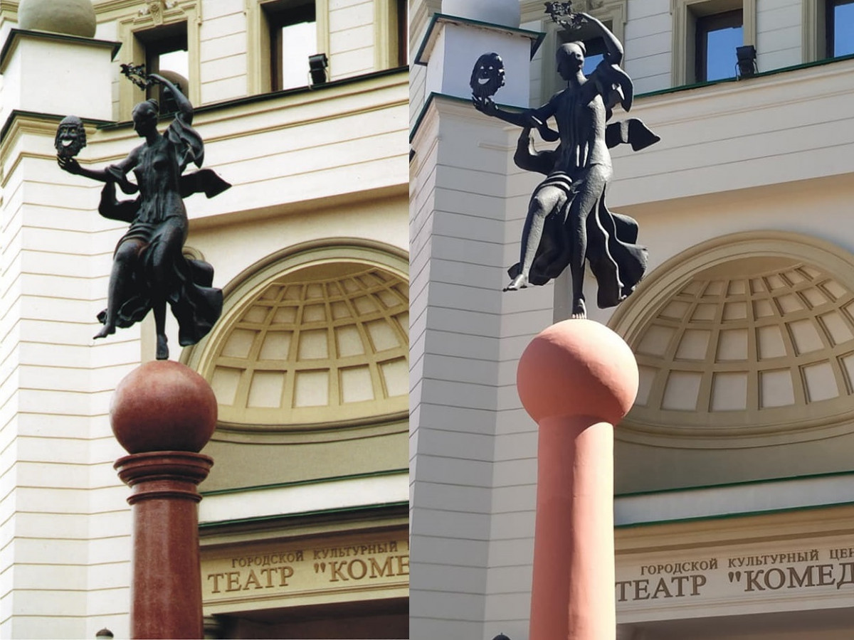 Нижегородский Бэнкси создал работу на тему скульптуры у театра «Комедии»