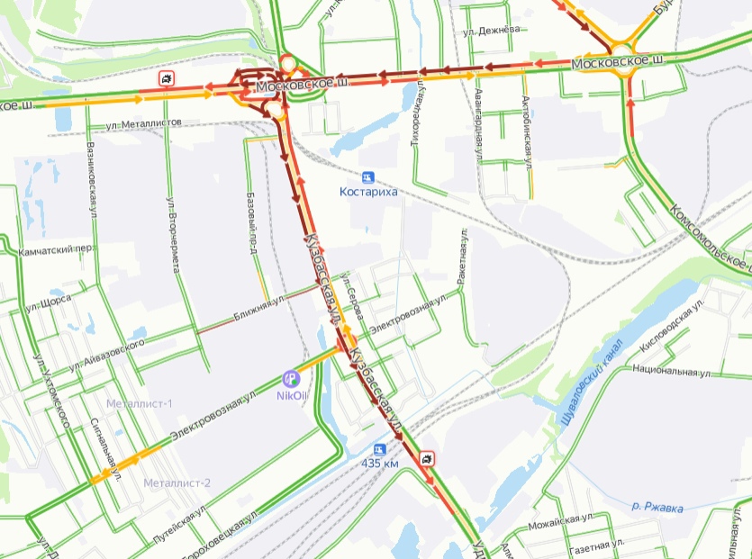 Огромная пробка образовалась из-за ДТП на улице Удмуртской, свидетельствуют данные сервиса Яндекс.Карты.
