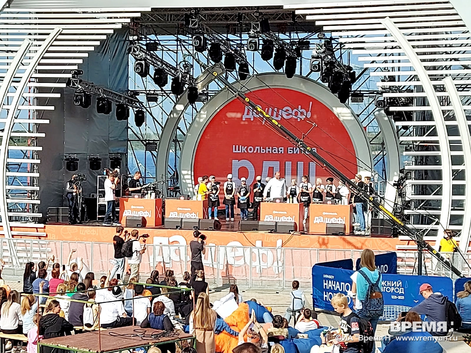 Напомним, что сегодня на главной сцене фестиваля проходит кулинарный баттл Российского движения школьников «Шеф в школе» среди общеобразовательных школ Нижнего Новгорода. Учащиеся со школьными поварами готовят «Завтрак будущего».