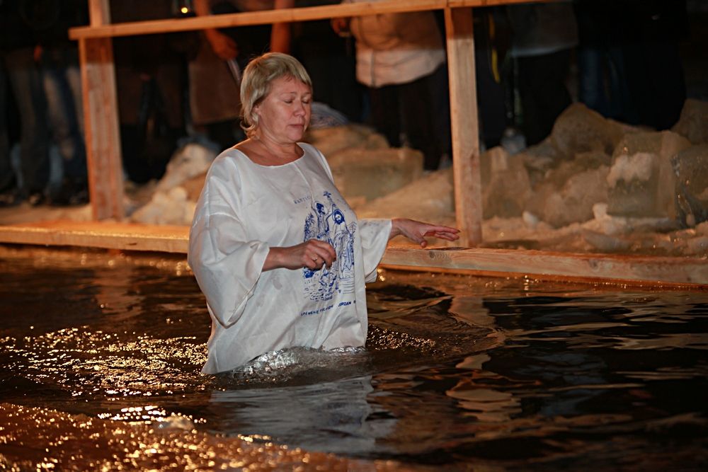 Причем окунуться в прорубь решили как взрослые, так и дети.