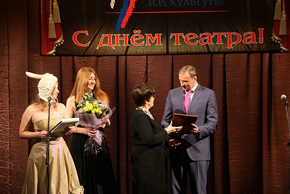 Кроме того, были вручены благодарственные письма за успехи в развитии театрального искусства, награды фестиваля «Премьеры сезона», «Школа современного театра», а также благодарность от минкультуры РФ получила руководитель литературно-драматического отдела театра драмы Тамара Яровикова.