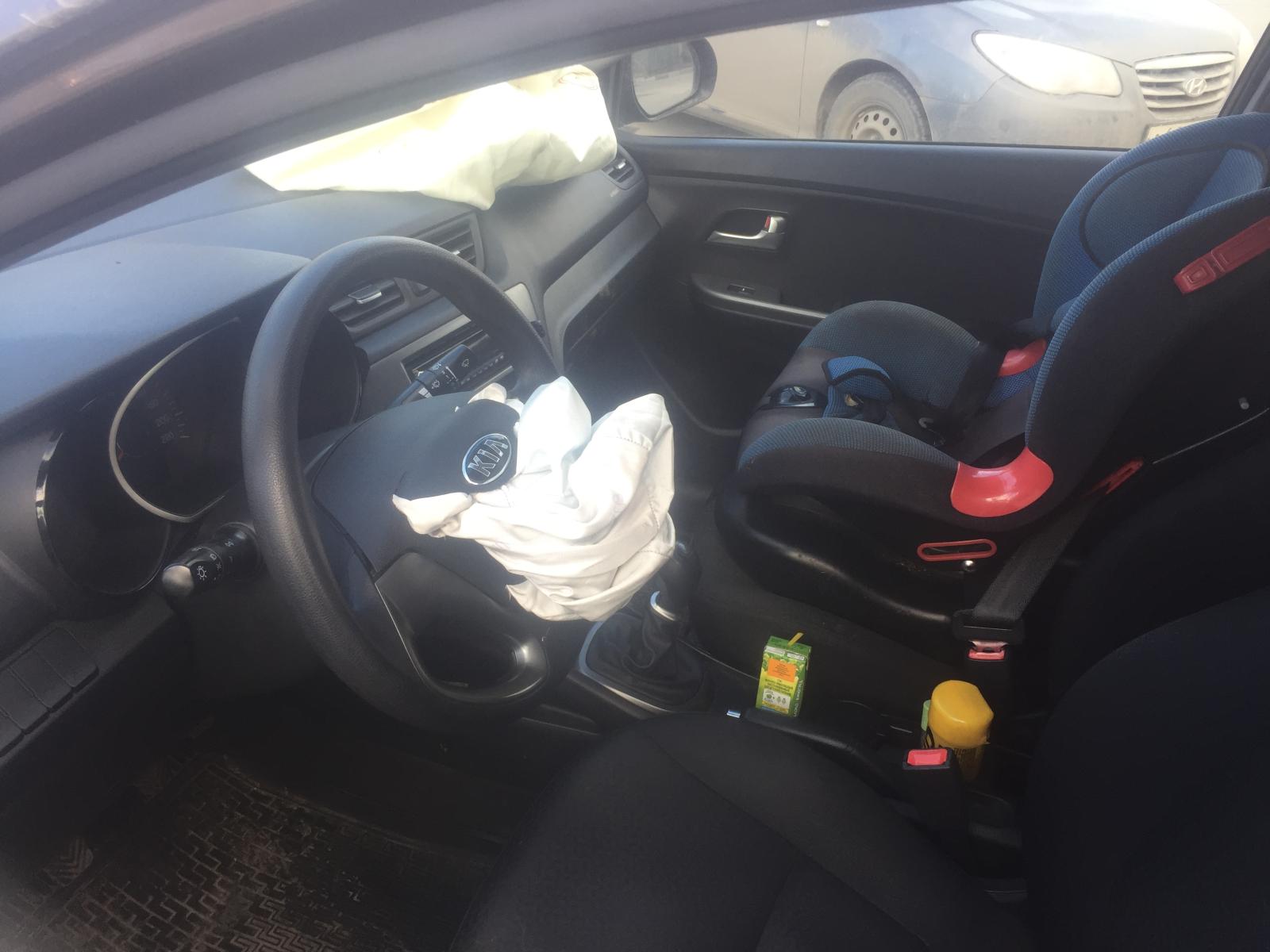 На перекрестке столкнулись автомобили «Хендай» и «Киа». В ДТП пострадал 5-летний мальчик, который ехал в детском автокресле на переднем пассажирском месте. В нарушение правил подушка безопасности не была отключена. При столкновении она сработала и нанесла ребёнку лёгкие травмы.