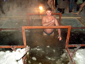 «Мы руководствуемся в своей работе специальным постановлением, в котором обозначены все требования, предъявляемые к местам купания. Так, глубина проруби должна быть не более 1,5 метров, толщина льда — не менее 25 см. Здесь на Гребном канале лед 40 см. Для обеспечения безопасности в периметр проруби вставлен деревянный короб. В случае если человеку станет плохо, то он не сможет утонуть. Дежуривший спасатель сможет поднять купающегося на поверхность. На всех официально объявленных местах купания будут дежурить врачи скорой помощи, также готовятся пункты для обогрева людей и возможностью переодеться, спасатели со специальным оборудованием готовы дежурить до последнего купающегося», — рассказал Георгий Наумов.