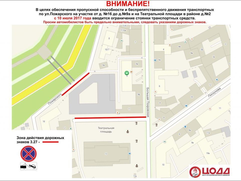 Ограничения по стоянке автомобилей в районе Театральной площади вступают в силу 10 июля. Об этом сообщается на сайте Центра организации дорожного движения Нижнего Новгорода.